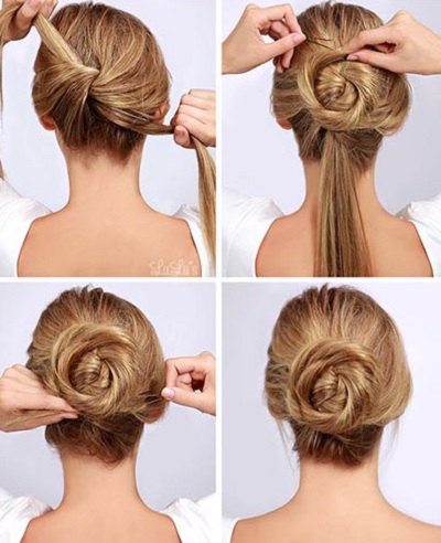 - สำหรับผู้หญิงที่มีผมบางหรือผมแตก มัดที่ทำกับโดนัทจะทำ คุณจะมีโอกาสซ่อนปลายด้านล่างของอุปกรณ์เสริมโดยปล่อยให้บริเวณที่เสียหายน้อยลง เบเกิลที่เข้ากับสีของขนจะซ่อนการขาดของมวลทั้งหมด