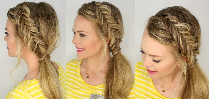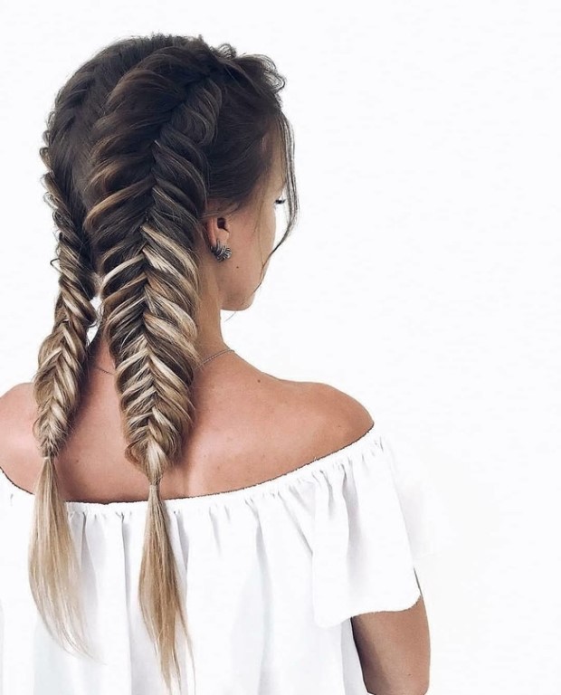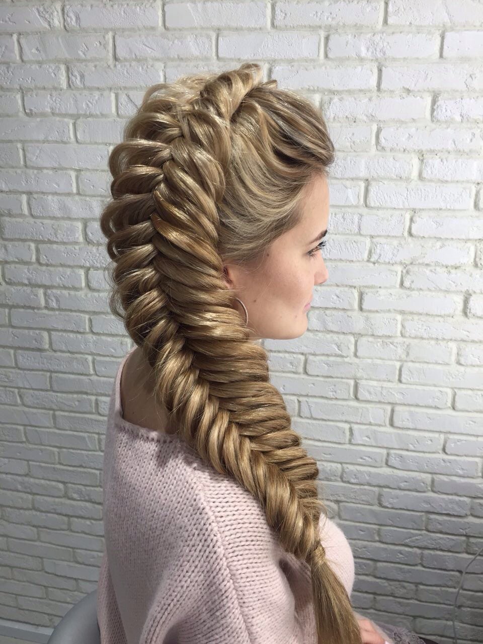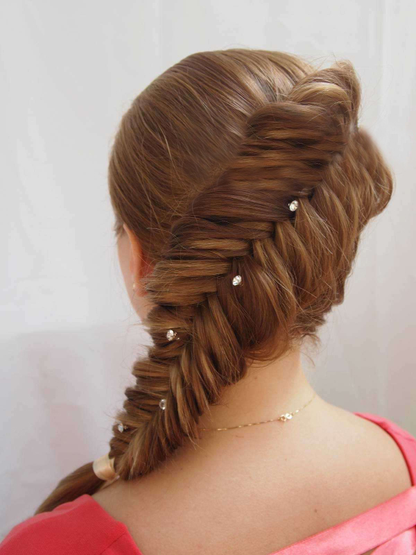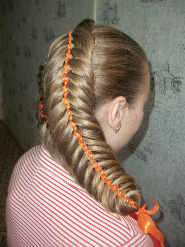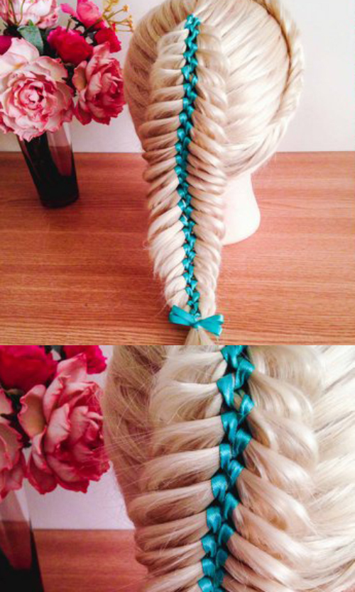 ถักเปียแบบย้อนกลับในลักษณะฝรั่งเศสหรือ "fishtail" เหมาะสำหรับใช้ในชีวิตประจำวันและสำหรับงานรื่นเริง ถักหางปลาบิดรักหญิงสาวที่โรแมนติกและมีความซับซ้อน ทรงผมนี้ทำให้ภาพที่ละเอียดอ่อน“ โปร่ง” และผสมผสานอย่างลงตัวกับโทนสีพาสเทลขององค์ประกอบของเสื้อผ้าและการแต่งหน้าอย่างเป็นธรรมชาติ การผสมผสานของเส้นสีสว่าง (ทำจากขนเทียม) ลงในถักเปียฝรั่งเศสจะช่วยเพิ่มความมีชีวิตชีวาและความสดชื่นให้กับภาพของคุณ