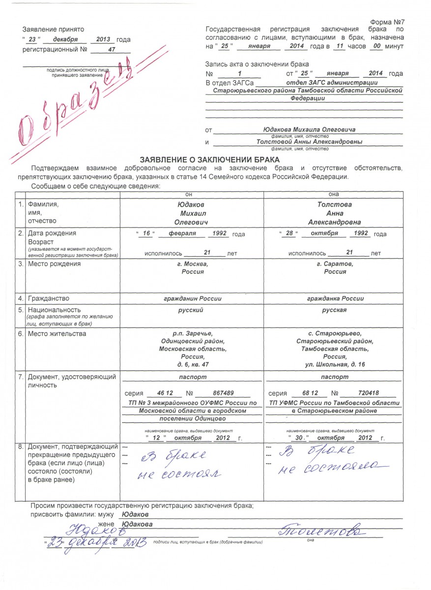 หากคุณไม่สามารถแสดงตนที่สำนักงานรีจิสตรีเมื่อส่งแอปพลิเคชันจะได้รับอนุญาตให้รับแอปพลิเคชันที่มีการรับรอง มันควรจะออกโดยคู่สมรสตัวเอง ก่อนที่คู่สมรสจะทำให้เกิดคำถามในการเปลี่ยนชื่อ ตัดสินใจล่วงหน้าว่าครอบครัวของคุณจะสวมใส่ชื่ออะไรเพื่อไม่ให้มีข้อพิพาทหรือความขัดแย้งในสำนักงานทะเบียน