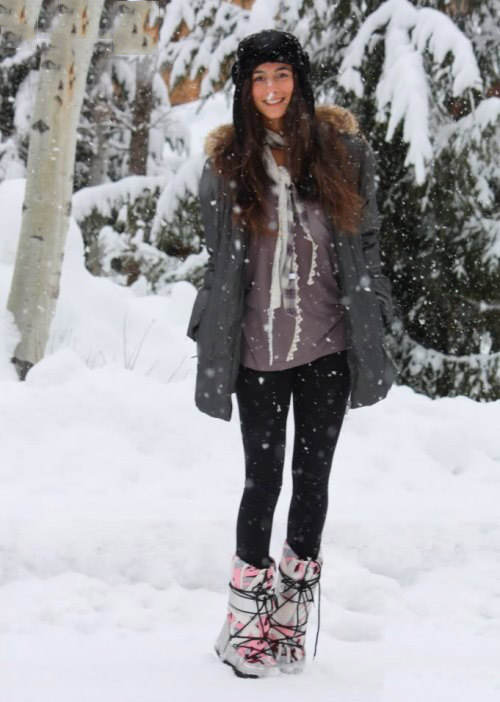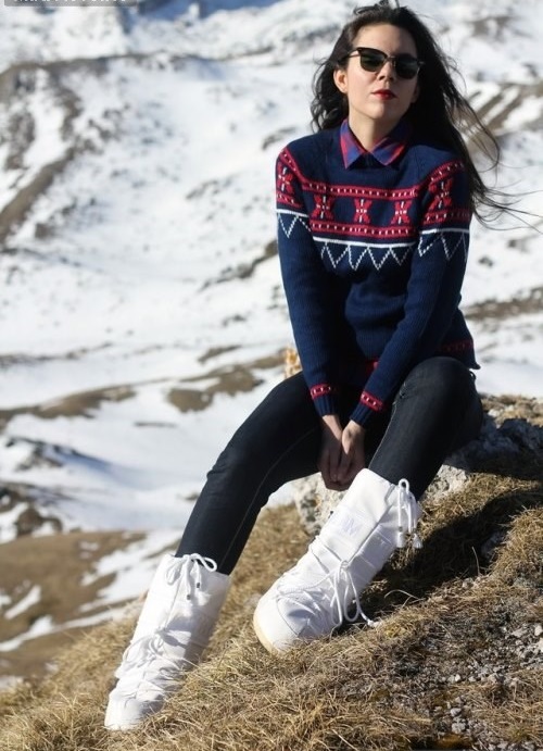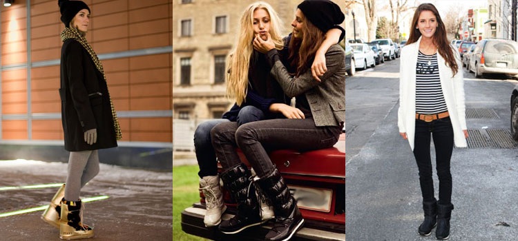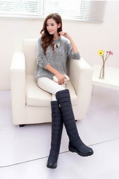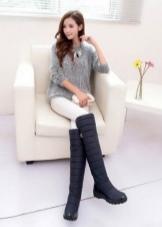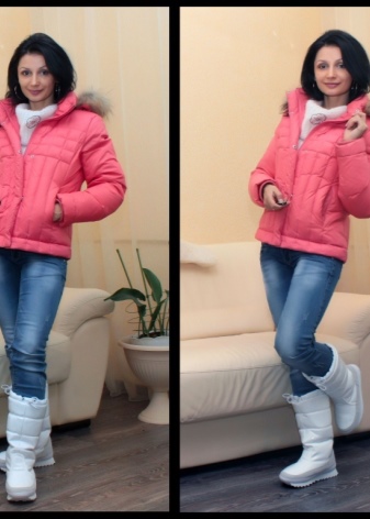 รองเท้ากีฬาฤดูหนาวจะดูดีด้วยแจ็คเก็ตลงคลาสสิกและสวนสาธารณะที่ทันสมัย โดยเฉพาะอย่างยิ่งที่น่าประทับใจคือการรวมกันของ dutik มันวาวและแจ็คเก็ตที่มีพื้นผิวที่คล้ายกัน หากคุณต้องการเน้นรูปร่างที่เพรียวบางคุณสามารถสวมเสื้อโค้ทที่อบอุ่นหรือเสื้อกันฝนกับรองเท้าบูท ด้วยรุ่นกีฬาคุณสามารถสวมเสื้อโค้ทขนสัตว์สั้นและขนาดกลางและเสื้อขนสัตว์