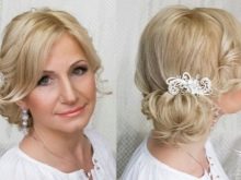 หากแม่จะไปปรากฏตัวที่งานแต่งงานในชุดสูทที่สง่างามก็ควรที่จะเอาผมออกเป็นทรงหลวมที่ด้านหลังศีรษะ เมื่อสร้างทรงผมนี้เราไม่ควรลืมเกี่ยวกับการสวมมงกุฎที่มงกุฎสองเส้นที่ถูกปล่อยออกมาและการวางเรียบ แน่นอนว่าวิธีที่ง่ายที่สุดที่ผู้ปกครองจะทำคือการพรากจากกันหรือการพรากจากกันอื่น ๆ ทำให้เส้นผมและม้วนผมขาดแสง อย่างไรก็ตามสไตล์นี้เป็นไปได้เฉพาะในกรณีของผมที่มีสุขภาพดีและดูแลเป็นอย่างดี ทรงผมสั้นหวีผมโค้งงอเล็กน้อยและเพิ่มวอลลุ่มให้ดูสง่างามอย่างไม่น่าเชื่อ “ วิปปิ้ง” และผมหดกลับเล็กน้อยมักได้รับความนิยมจากแขกที่มีอายุมากกว่า การแยกทางกระดูกสันหลังจะสามารถฟื้นการติดตั้งที่แพร่หลายได้ตลอดเวลา