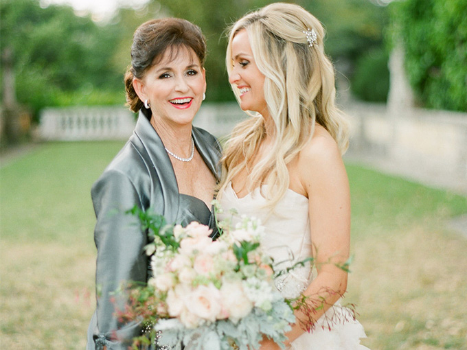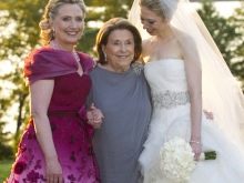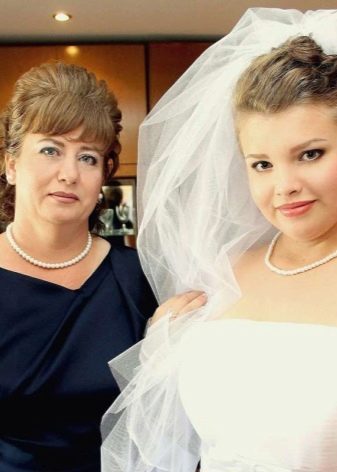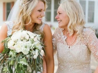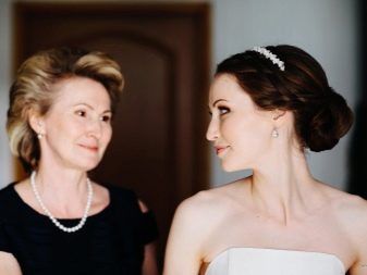 - การวางจะต้องมาพร้อมกับอุปกรณ์เสริมในจำนวนขั้นต่ำ อย่างไรก็ตามคุณแม่ทุกคนควรมีสติปัญญาความปรองดองและความเรียบง่ายรวมถึงกระดุมที่มีก้อนกรวดและปิ่นปักผมจำนวนมาก อุปกรณ์เสริมที่เรียบร้อยอย่างหนึ่งที่เข้ากันได้ดีกับภาพที่เป็นของแข็งนั้นเหมาะสม แต่ควรหลีกเลี่ยงรายการส่วนเกินบนหัว - - เลือกทรงผมที่ง่ายที่สุด มันเป็นการดีที่จะทิ้งความหลากหลายของการทอและ bouffant ให้กับเจ้าสาว - เธอจะต้องส่องแสงในวันนี้และแม้กระทั่งอายุที่โตแล้วก็ยังรวมเข้ากับการออกแบบขั้นพื้นฐาน นอกจากนี้หากเจ้าสาวงอหยิกธรรมชาติและแม่ของเธอเลือกการออกแบบที่ซับซ้อนมันดูแปลกอย่างน้อย ควรจำไว้ว่าการจัดแต่งทรงผมที่เรียบง่ายทำให้ใบหน้าดูอ่อนกว่าวัย