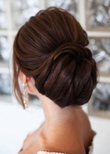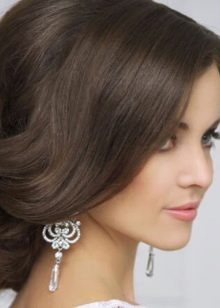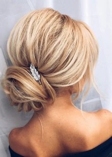 ผมยาวปานกลางให้พื้นที่ในการจินตนาการมากขึ้นดังนั้นควรเลือกสไตล์ขึ้นอยู่กับการแต่งกายรูปร่างใบหน้าและเรื่องของการแต่งงาน ตัวอย่างเช่นเปลือกฝรั่งเศสซึ่งทำให้ผมบางขนาดใหญ่ดูสง่างามมาก เมื่อต้องการทำเช่นนี้พวกเขาจะต้องรวบรวมที่ด้านหลังของศีรษะบิดเป็นขดสง่างามและปลอดภัยด้วยความช่วยเหลือของ hairpins และ hairpins ที่มองไม่เห็น เพื่อที่จะทำให้ภาพดูเป็นทางการน้อยลงคุณสามารถปลดสายสัมพันธ์สองเส้นออกจากใบหน้าของคุณแล้วบิดเป็นเกลียว