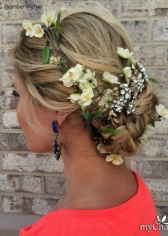 โดยหลักการแล้วดอกไม้มีความเหมาะสมกับทรงผมเกือบทุกชนิดตัวอย่างเช่นพวกเขาสามารถถักเป็นเปียหรือถักเป็นขอบ ดังนั้นทางเลือกควรเป็นไปตามภาพแม่ทั้งหมดของคู่บ่าวสาว อย่างไรก็ตามอีกครั้งคุณต้องไปหาเจ้าสาวถ้าเธอจะทำทรงผมที่คล้ายกัน