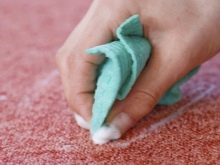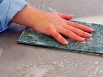 หลังจากนั้นคุณสามารถใช้ฟองน้ำที่มีซับในที่แข็ง เธอต้องการที่จะถูรอยเปื้อนบางครั้งก็เปิดด้านที่อ่อนนุ่ม จำเป็นต้องถูแรง ๆ แต่อย่าหักโหมเพราะถ้าคุณใช้แรงมากเกินไปคุณสามารถทำความสะอาดพื้นผิวที่เสียหายได้ หลังจากทำความสะอาดคราบอย่างสมบูรณ์คุณควรใช้น้ำธรรมดาซึ่งคุณต้องเจือจางด้วยผงซักฟอกก่อนและเช็ดพื้นผิวนี้เพื่อลบคราบไขมัน