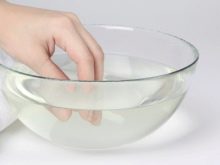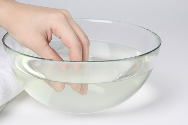 - ด้วยความช่วยเหลือของเกลือหนึ่งช้อนซึ่งจะต้องเพิ่มในชามน้ำอุ่น ควรวางมือลงในภาชนะนี้และเก็บไว้ที่นั่นจนกว่าโฟมจะนุ่มและสามารถลบออกได้ด้วยมือหรือฟองน้ำ