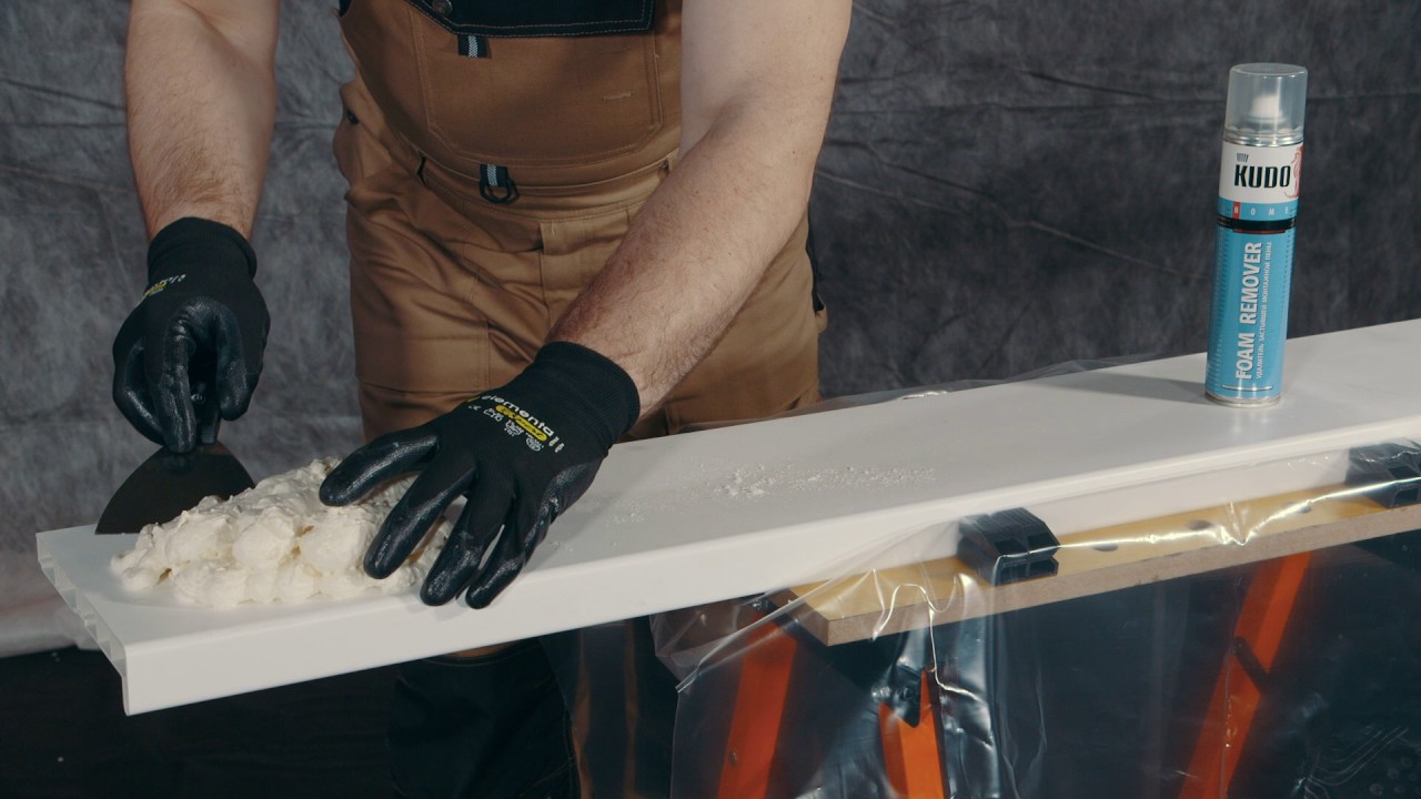 โฟมโพลียูรีเทนได้กลายเป็นผู้ช่วยหลักเมื่อติดตั้งโครงสร้างหน้าต่างหรือประตู มันสามารถที่จะปิดผนึกและเสริมสร้างกรอบหน้าต่างและยังทำหน้าที่เป็นฉนวนกันเสียงและช่วยในการรักษาความร้อนในห้อง ไม่ว่ากระบวนการติดตั้งจะดำเนินไปอย่างระมัดระวังเพียงใดโฟมบางจุดอาจปรากฏบนพื้นผิว การใช้น้ำยาทำความสะอาดเป็นมาตรการที่รุนแรงเนื่องจากอาจส่งผลเสียต่อลักษณะที่ปรากฏของหน้าต่างเนื่องจากกระจกอาจเสียหาย