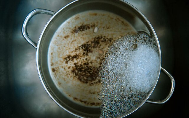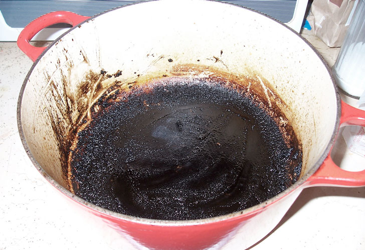 เมื่อข้าวโอ๊ตหรือแยมไหม้ด้านล่างของกระทะจะไม่สามารถล้างได้ง่าย นอกจากนี้ยังไม่ใช่เรื่องง่ายที่จะกำจัดเขม่าซึ่งมักก่อตัวบนผนังของอาหารเนื่องจากไฟไหม้รุนแรงหรือด้วยเหตุผลอื่น