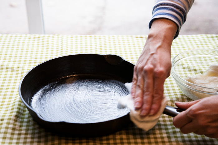 โดยทั่วไปจะใช้กระทะสำหรับปรุงอาหารหรือให้ความร้อนกับอาหารที่เตรียมไว้แล้ว ทุกครั้งที่มีการใช้ไขมันจะเทลงบนซึ่งครอบคลุมผลิตภัณฑ์ด้วยชั้นบาง ๆ ไขมันยังคงอยู่บนผนังด้านใน