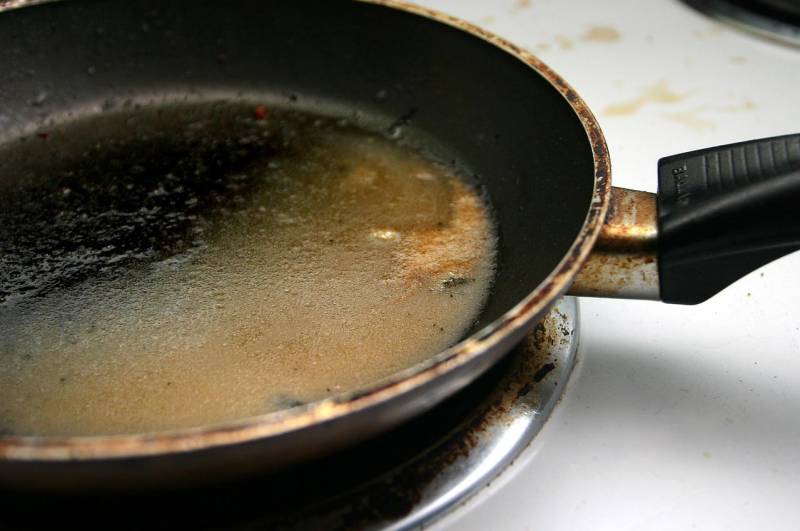 เพื่อที่จะกำจัดไขมันออกจากพื้นผิวด้านในของกระทะควรวางบนกองไฟและน้ำ 200 มล. น้ำส้มสายชู 100 มล. และโซดา 2 ช้อนโต๊ะ เมื่อสารละลายเดือดคุณต้องลดความร้อนและเพิ่มโซดาอีก 50 กรัม ควรต้มเครื่องครัวจนของเหลวระเหยหมด หลังจากกระทะแล้วล้างออกด้วยน้ำอุ่น ดำเนินการทั้งหมดที่จำเป็นในหน้ากาก เนื่องจากคุณสามารถได้รับการเผาไหม้อย่างรุนแรงจากการระเหยของโซดา