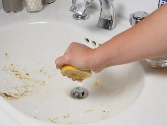 - ด้วยมะนาว อ่างล้างจานไฟสามารถทำความสะอาดได้อย่างง่ายดายจากคราบด้วยมะนาวฝาน พวกเขาจำเป็นต้องถูสิ่งสกปรกแล้วล้างออกด้วยน้ำ