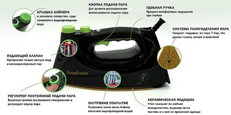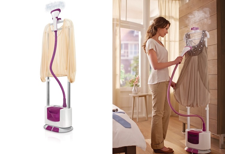 อุปกรณ์ที่มีเครื่องกำเนิดไอน้ำอย่างง่ายดายและน่าสนใจด้วยเสื้อผ้าจำนวนมากมีอายุการใช้งานค่อนข้างยาวและทำให้เจ้าของพอใจกับงานที่มีคุณภาพและแม่นยำสูง มีความสะดวกมากที่สุดมักจะใช้สำหรับผ้าที่ละเอียดอ่อนเรียบ สามารถสั่งผ้าม่านและสิ่งทอตามลำดับ