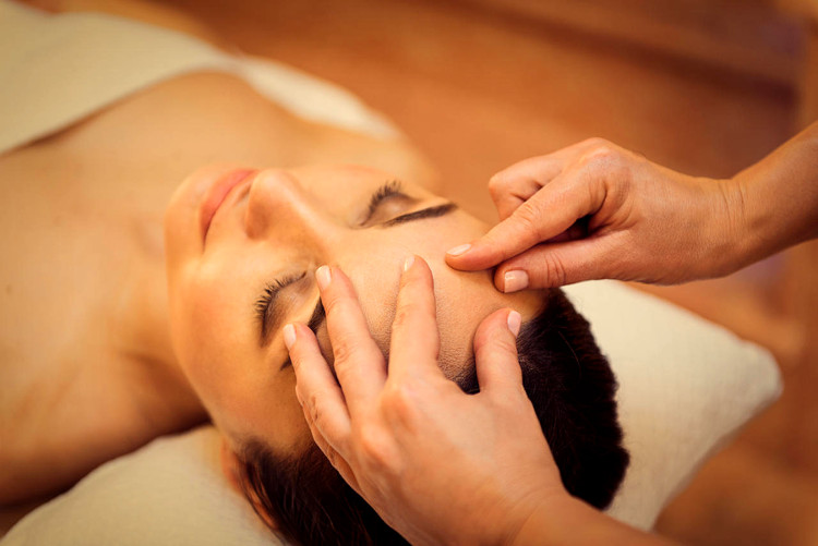 แต่ละส่วนของใบหน้าทำงานอย่างสม่ำเสมอ ดังนั้นการถูจะดำเนินการจากส่วนล่างของคอและจบลงด้วยหน้าผาก ในระหว่างการถูปลายนิ้วจะทำการวนเป็นวงกลม พื้นที่ของหน้าผากสามารถดำเนินการต่อไปได้โดยการแตะที่การเคลื่อนไหว หากมีการลอกเลียนแบบเกิดขึ้นในบริเวณนี้แล้วควรทำการนวดอย่างมีประสิทธิภาพ