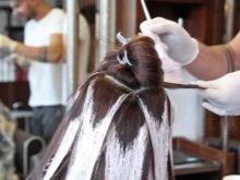 - Ang pagtitina para sa maitim na buhok ay dapat magsimula sa pag-lightening ng mga indibidwal na strands o ang buong layer ng buhok, depende sa uri na napili. Upang gawin ito, ihanda ang clarifier sa tangke, at pagkatapos ay inilapat sa mga napiling kulot. Ito ay dapat na maingat na pinaghiwalay at protektahan ang tuktok at ilalim na layer mula sa gitna, kung ito ay pininturahan ng foil. Ito ay kinakailangan upang ang clarifier ay hindi makakakuha ng mga lugar na hindi pininturahan.