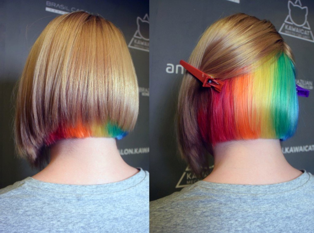 Ang pangkulay sa estilo ng "bahaghari", tulad ng iba pa, ay nagiging sanhi ng isang pagbabago sa istraktura ng buhok sa isang antas o iba pa, na kung bakit ang naturang buhok ay nangangailangan ng maingat na pangangalaga.