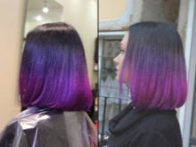 Isa sa mga pinaka-sunod sa moda estilo ay isinasaalang-alang lilang ombre - Ang variant ng pagtitina na ito ay mukhang maganda sa mga kababaihan sa anumang edad, ang pangunahing bentahe nito ay kapag ang pagtitina sa root zone ay hindi naapektuhan, kaya ang pinsala na dulot ng buhok ay minimal. Ang isang mahusay na pagkakataon upang i-refresh ang kutis ay paglamlam sa mga lilang kulay ng mga tip ng mga hibla, Ang ganitong uri ng toning napupunta rin sa makapal na bangs.