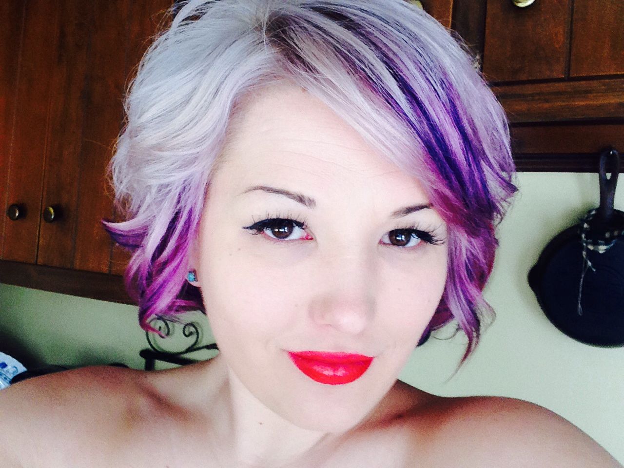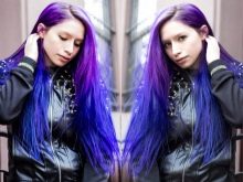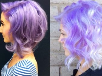 Ang pagpapaputi ng buhok sa lilim ng mga lilang, kaya binibigyang-diin ng kababaihan ang di-pamantayan ng kanilang pag-iisip at nagpapakita ng isang alternatibong pananaw sa nakapaligid na katotohanan, at upang lumikha ng isang malikhaing imahe na hindi kinakailangan na gumamit ng mono-coloring - sapat na upang gumawa ng ilang mga tono ng tuldik.
