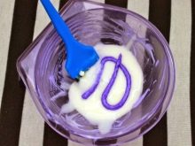 - Ito ay kanais-nais na hugasan ang pintura na may maligamgam na tubig - sa ilalim ng mainit na stream ang pigment ay bahagyang hugasan at sa halip ng isang magandang bayolna makakakuha ka ng lilac shade.