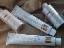 - Nouvelle - Paint-cream, espesyal na nilikha upang lumikha ng isang maliwanag na creative na imahe. Ang mga lilim na iniharap ng tagagawa na ito ay angkop para sa mga maitim na buhok na batang babae, ang pigment ay may kakayahang sumuot ng malalim sa istraktura ng buhok, dahil sa kung saan ang kulay ay puspos, at sa karagdagan, ang kulay-abo na buhok ay ganap na ipininta.Ang formula ay dagdagan din ng protina ng bigas at mga herbal extracts - kaya ang pinsala na dulot ng buhok ay neutralized, ang pagkalastiko ng mga hibla ay naibalik, at ang mga curl ay nabasa mula sa ugat patungo sa tip.