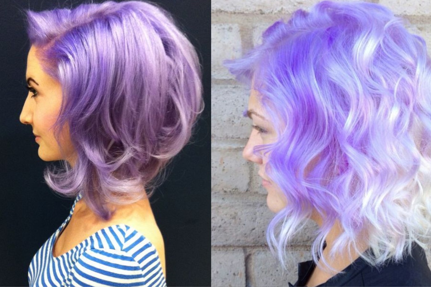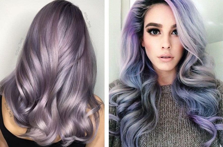 Ang intensity ng kulay ng kulay-lila ay maaaring mag-iba sa pinakamalawak na hanay ng mga kulay. Sa mga ilaw na ilaw, ang pinaka-may-katuturan ay puting-lila, perlas, pati na rin ang mga tono - tulad ng mga kulay perpektong magkasya blond buhok, lalo na sa platinum tints.