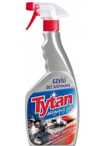 - Spray Tytan - Un outil spécial qui aide à lutter contre la suie. Il suffit de le vaporiser sur la zone contaminée et de le tenir pendant 5 minutes, puis de le rincer à l'eau courante chaude;