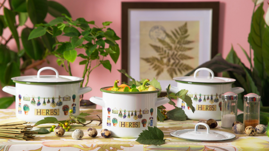 Enamelware a un grand nombre de qualités positives. Il est hygiénique, facile à nettoyer et n'entre pas en réaction chimique avec les aliments. Les plats qui y sont cuisinés se distinguent par leur bon goût dû à excellente conduction thermique. Vous pouvez également y conserver des aliments cuits assez longtemps. Par conséquent, elle jouit de la popularité et de l'amour bien mérités de toutes les ménagères, prenant sa place dans la cuisine.