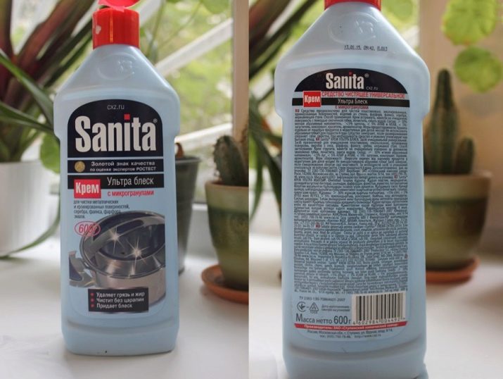 - Sanita "Ultra Gloss" - Nettoyant universel crémeux qui peut être utilisé pour nettoyer toutes les casseroles. Il résiste bien à la saleté, aux dépôts minces de graisse et de calcaire (calcaire);