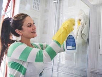Lavez le miroir dans la salle de bain, ainsi que les structures en verre de la cabine de douche, aussi soigneusement que possible. Peu importe que vous utilisiez des outils fabriqués dans des usines ou des composants improvisés, ils s'évaporent tous activement. En conséquence, vous pouvez subir une intoxication soudaine, si la concentration de la substance active dans un espace confiné serait critique.
