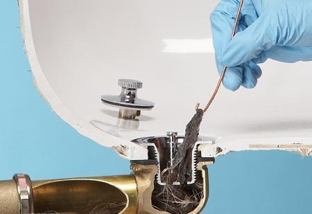 - Il est nécessaire de nettoyer le drain de colmatage pas plus tôt que toute l'eau s'échappe de lui. Mieux vaut attendre vingt minutes de plus que de compliquer votre travail. Parfois, le problème est résolu en retirant le bouchon de vidange et la grille, après quoi vous pouvez retirer le morceau de saleté à la main, avec un bâton court ou une tige en métal. Déterminez avec précision la profondeur du blocage, la lampe de poche vous aidera.