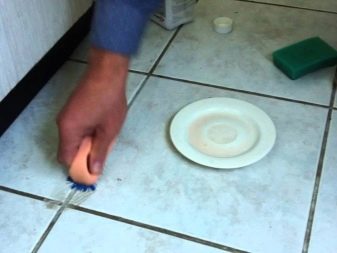 La base de ces produits chimiques sont acides forts. Pour effacer les espaces de carreaux, appliquer le mélange chimique sur les joints et attendre que cela fonctionne. Après un certain temps, les coutures sont lavées à l'eau tiède. Si nécessaire, vous pouvez éliminer les restes de saleté avec une brosse.