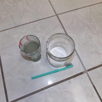 - Une combinaison fiable est la solution. citron, vinaigre et bicarbonate de soude. Pour 6 verres d'eau, prenez un demi-verre de soda et un tiers d'un verre de vinaigre, puis ajoutez la même quantité de jus de citron. Appliquez le liquide sur les coutures pendant 10-15 minutes. Pour que le résultat soit vraiment fiable, il est préférable d’aider le mélange liquide à pénétrer dans le coulis avec une brosse. Une telle procédure doit être effectuée au moins 2 à 3 fois, afin de se débarrasser de toute la saleté accumulée.