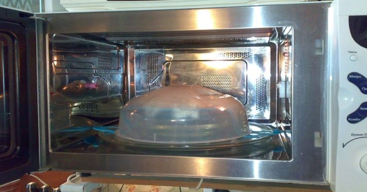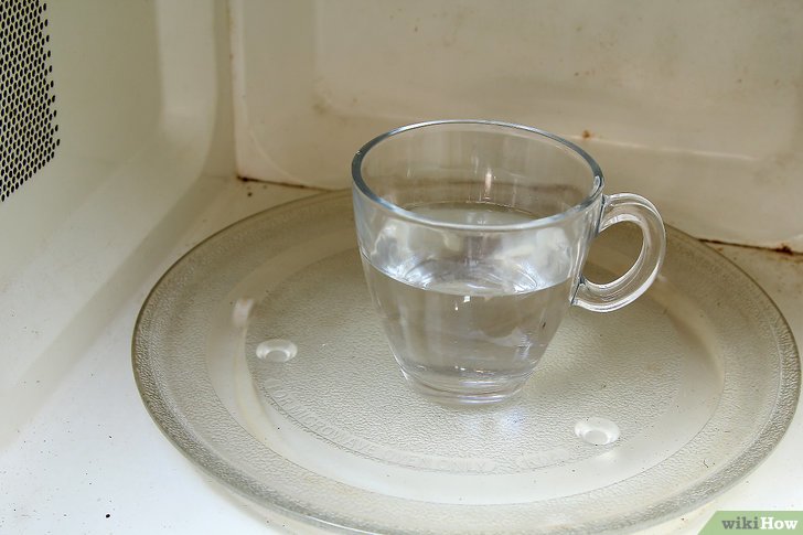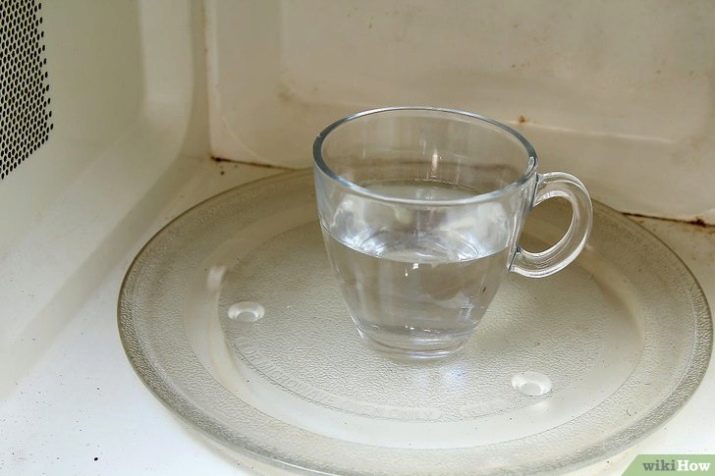 - Mettez les plats avec le liquide au micro-ondes pendant 10-15 minutes. À la fin, retirez soigneusement le récipient, car il sera très probablement chaud, et essuyez les parois intérieures du four avec une éponge non rigide.