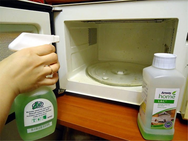 Dans les modèles modernes de micro-ondes, la partie interne est émaillée, elle réfléchit les ondes micro-ondes, donc Il n'est pas souhaitable d'utiliser des moyens chimiques pour ne pas endommager l'intérieur du four.