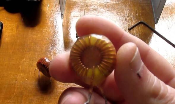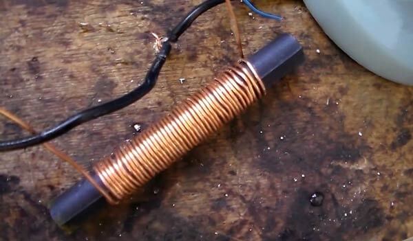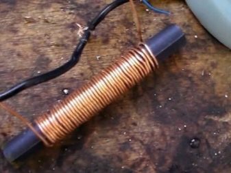 - Nous enroulons la bobine avec une tige de ferrite sur le tube, nous ne retirons pas la broche elle-même (tige) et ne la lions pas à rien, la laissant libre de la suspendre. Un aimant est enfilé à une extrémité - nous obtenons un émetteur à ultrasons.