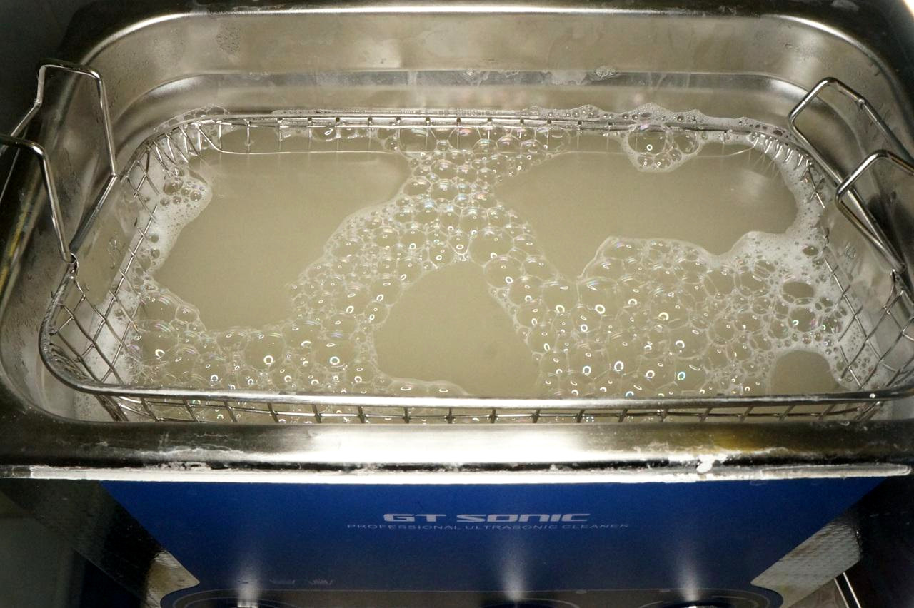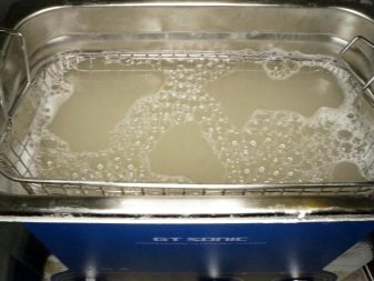 Lorsque vous nettoyez de petits objets, placez-les dans un verre avec un liquide de nettoyage, puis abaissez-les dans un récipient dans lequel de l'eau ordinaire sera versée.