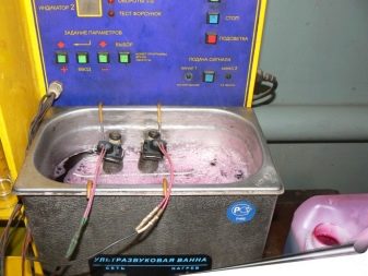 Par exemple, une buse de dosage de carburant ne peut pas être complètement rincée lorsqu'elle est bouchée. Dans ce cas, retirez l'injecteur avec les buses et effectuez le nettoyage dans le bain avec des vagues à une fréquence réduite.Cette procédure est répétée plusieurs fois. Toutes les pièces métalliques sont soumises au même nettoyage pour éliminer les signes de vieillissement.