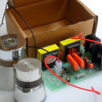 L'émetteur qui transforme les oscillations de courant électrique en oscillations mécaniques est le mécanisme principal de l'appareil. Les vibrations modifiées, frappant la solution de nettoyage, affectent les objets à nettoyer à travers les parois du vaisseau. L'élément chauffant est un composant structurel qui maintient une température constante du liquide. La source de vibration est un générateur de fréquence. Tous les paramètres des modes établis et des intervalles de temps de nettoyage sont contrôlés par l'unité de contrôle.
