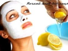 - De blanc d'oeuf. Pour la préparation du mélange thérapeutique, on prend une protéine et une cuillère à soupe de jus de citron fraîchement pressé. Tout se mélange bien et est fouetté, puis la masse obtenue est appliquée sur le visage et laissée pendant 20 minutes, puis lavée à l'eau bouillie.
