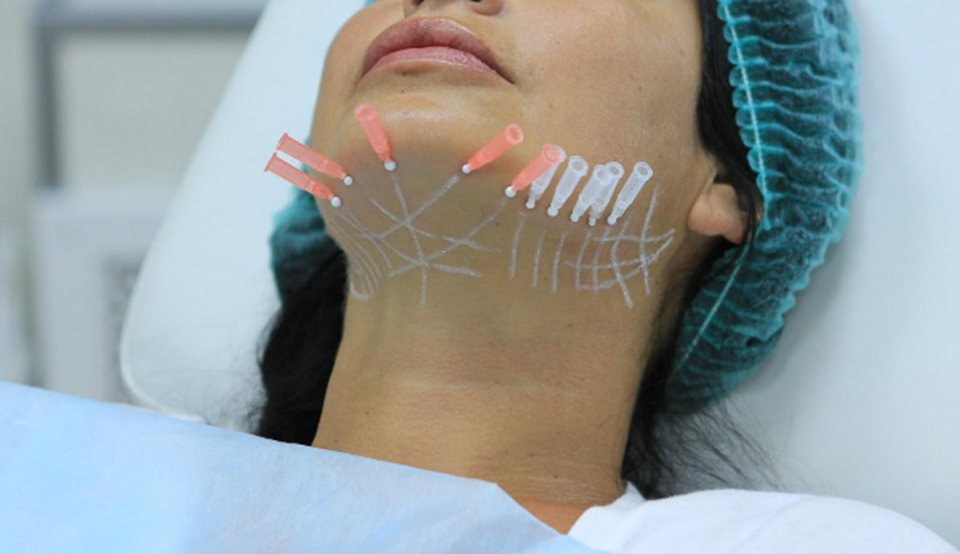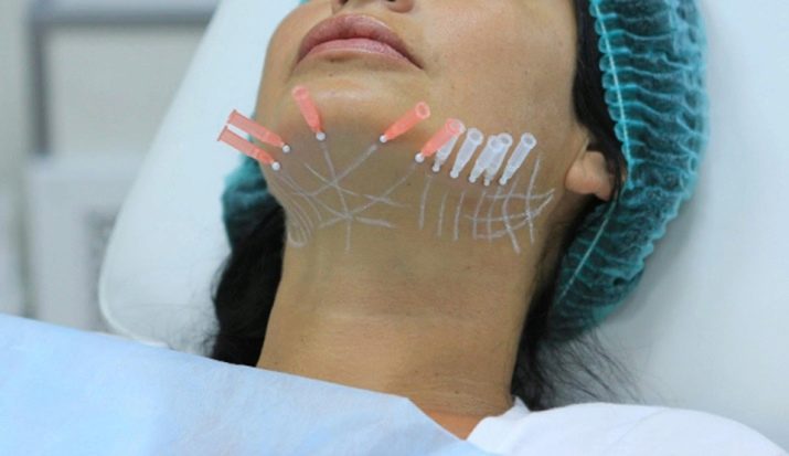 À partir de 35 ans, de nombreux patients choisissent des salons de beauté et un ascenseur avec des fils de platine ou d'or. Avant l'intervention, les spécialistes évaluent la complexité des changements liés à l'âge, puis injectent des fils sous la peau et les resserrent. Vous pouvez éventuellement entrer des threads résorbables et simples qui sont supprimés après un certain temps. Ils sont équipés d'encoches pratiques qui, au cours de la procédure, sont fixées sur le tissu et forment un cadre en collagène. Cette méthode peut être attribuée à une chirurgie corrective, car la restauration prendra environ un mois.