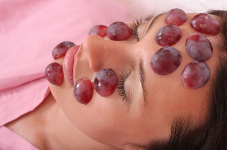 - De raisins. Plusieurs raisins sont pris, ils sont pelés et mélangés avec de l'argile blanche et du jaune fouetté. Pour restaurer la peau, maintenez le mélange pendant 15 minutes et rincez le visage à l'eau froide.