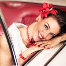 Tất nhiên, hình ảnh đáng kinh ngạc trong phong cách retro sẽ không làm được nếu không có các phụ kiện phù hợp. Đó là lý do tại sao chiếc váy lụa, màu ngà, được bổ sung bởi các hạt san hô nhiều lớp, các chi tiết có kích thước trung bình, do đó, chúng trông rất gọn gàng và tinh xảo.