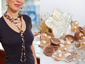 Không kém phần thú vị, nhưng những hạt xà cừ sáng hơn và đáng chú ý hơn với bề mặt óng ánh. Vẻ ngoài xinh đẹp và mô hình của aquamarine và aventurine. Các sản phẩm chơi với màu sắc hoàn toàn khác nhau - một trong số chúng là màu xanh da trời và màu của cái kia gợi nhớ đến màu sắc mùa thu ấm áp.