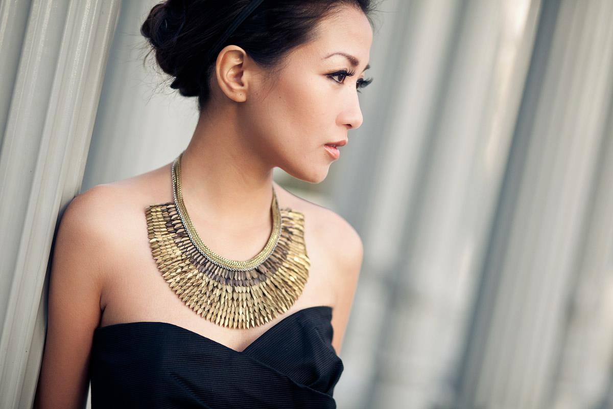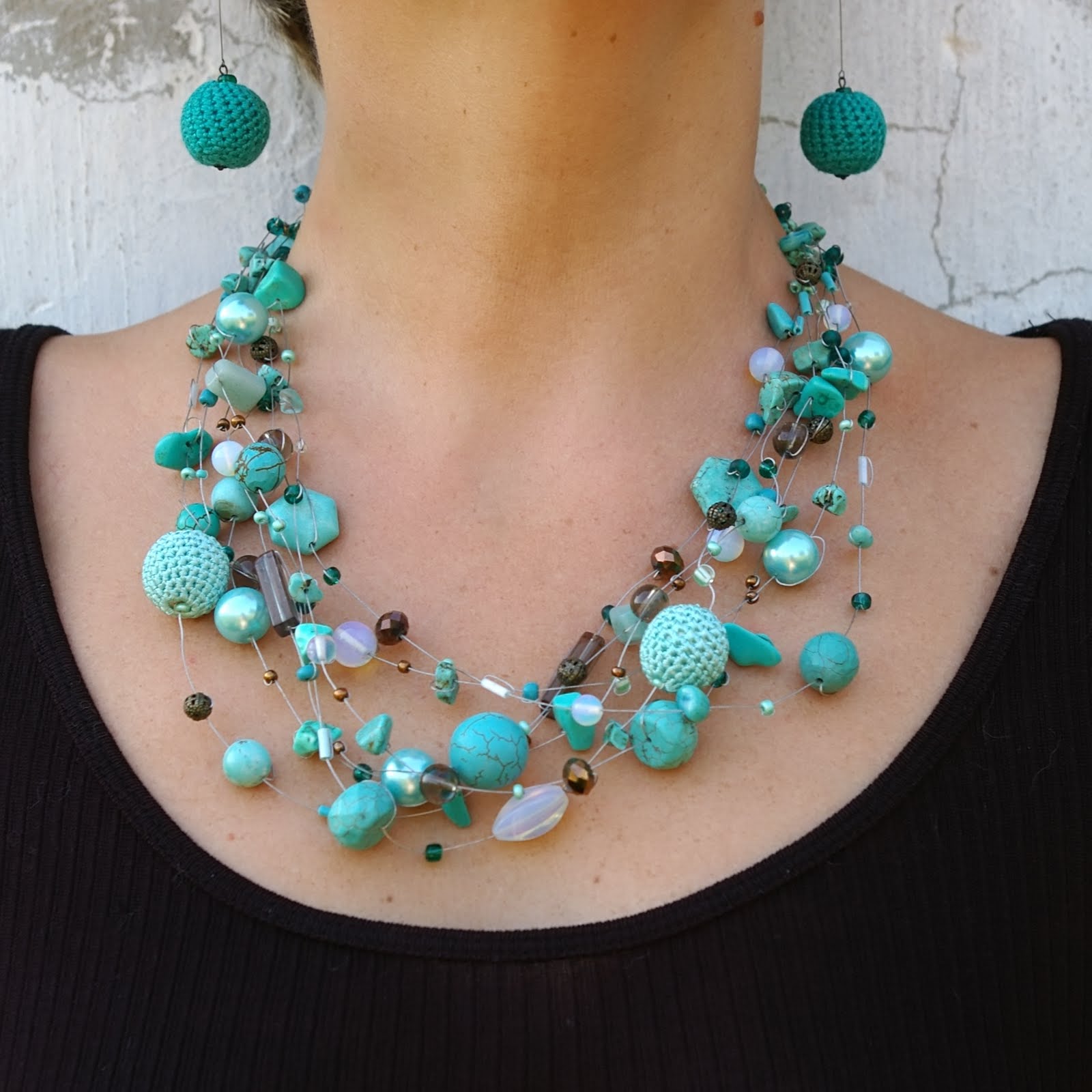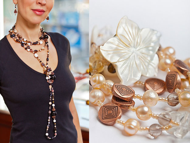 - Một sản phẩm nhiều hàng ngắn làm bằng hạt cỡ trung bình sẽ phù hợp với đường viền cổ áo;
