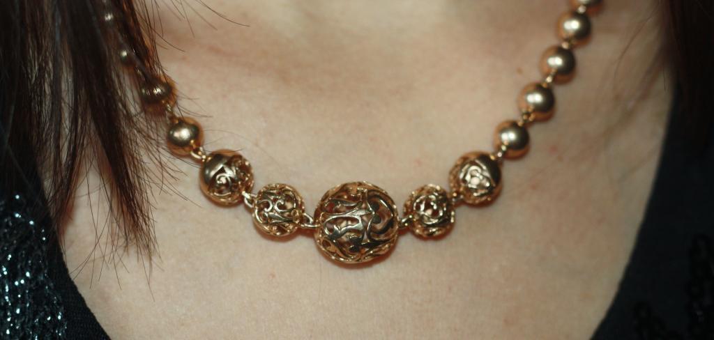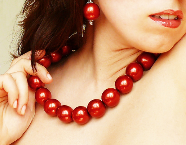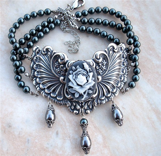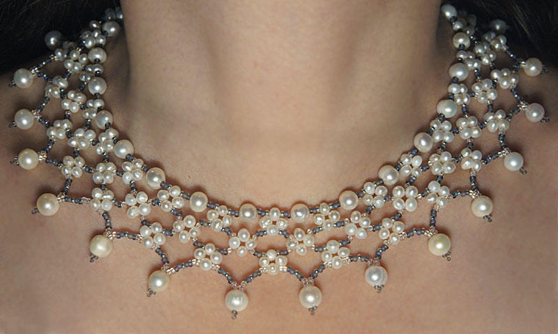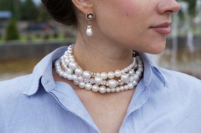 Ví dụ, hạt lớn được sử dụng để bổ sung cho trang phục cổ điển nghiêm ngặt hoặc trang phục dạ hội kín đáo. Mẫu này hoàn hảo cho những cô gái có cổ dài mỏng.