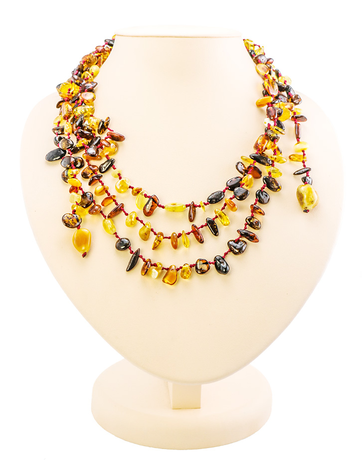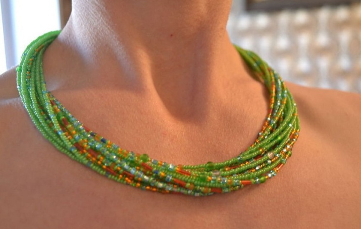 Các hạt nhiều hàng tạo ra khối lượng bổ sung ở vùng cổ và ngực trông ấn tượng. Những cô gái với hình thể tuyệt vời không cần một hiệu ứng như vậy, vì vậy các nhà tạo mẫu khuyên người mẫu này nên có vẻ đẹp thanh mảnh đặc biệt.
