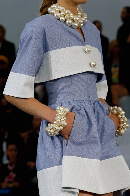 Chiếc nơ thời trang với những phụ kiện khác thường sẽ lấp lánh với màu sắc mới. Bộ đồ mùa hè, bao gồm một chiếc quần lửng cotton và áo khoác cắt, từ cùng một chất liệu, trông tuyệt vời với các hạt ngắn nhiều lớp từ ngọc trai trang trí lớn. Nếu muốn, trang phục có thể được bổ sung với vòng tay lớn từ cùng một bộ sưu tập.