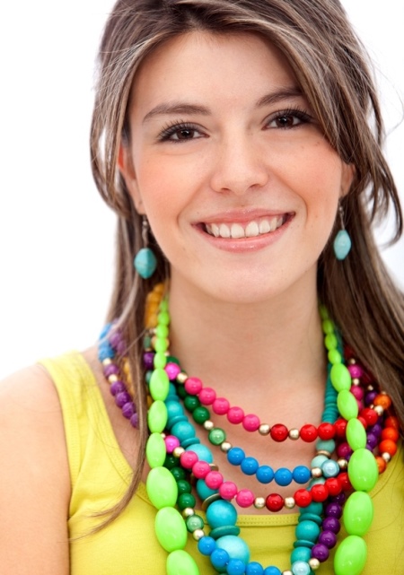 Các sản phẩm màu vàng, xanh lá cây và cam phù hợp để tạo ra hình ảnh mùa hè tươi sáng. Các hạt nhiều màu thường được sử dụng như một phụ kiện để bổ sung cho trang phục của trẻ em.
