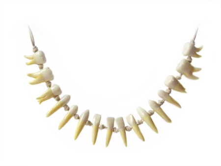 Sau này, với thời gian của con người nhân tạo, nhiều viên sỏi, vỏ sò và các vật thể ngẫu hứng khác, ở trung tâm của các lỗ được tạo ra, được sử dụng để tạo ra các chuỗi hạt, và sau đó một chuỗi, cột cờ, ruy băng hoặc băng được truyền qua chúng.