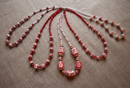 Những hạt màu đỏ rất đẹp và tinh xảo có màu đỏ tươi được làm từ ngô. Một số mô hình, khi sử dụng một kỹ thuật xử lý đặc biệt, có thể có được màu ombre - đỏ tươi, chuyển thành màu trắng trơn tru.