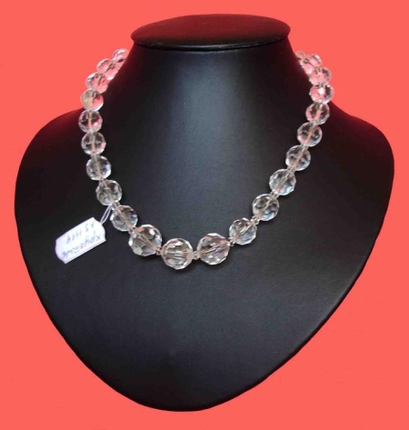 Trong suốt, như nước mắt, hạt có hình dạng khác nhau phô trương trên sản phẩm làm từ đá pha lê. Mô hình này sẽ trang trí cổ của những người đẹp nữ tính và lãng mạn, nhưng tốt hơn là không nên mặc sản phẩm với những thứ nhẹ nhàng - nó sẽ bị mất trên nền của họ.